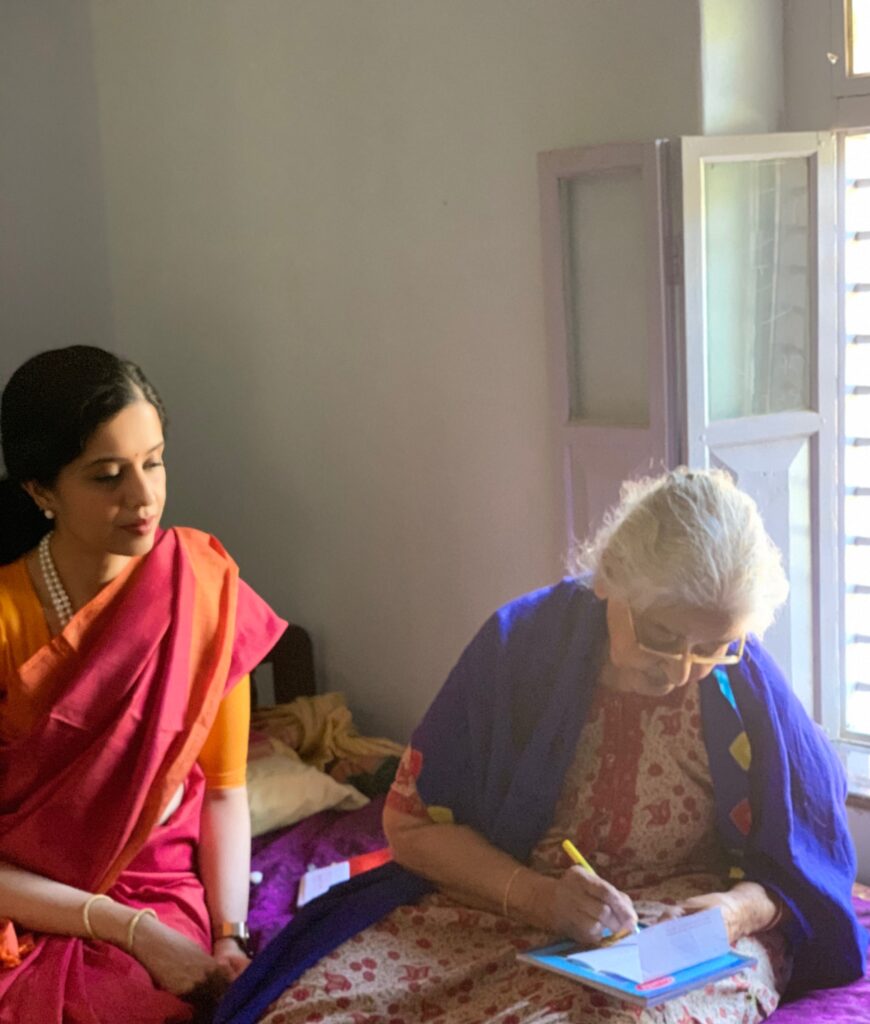 When I was writing my book, every time I visited her, she would ask me, “Where is your book?” She was very happy when she finally saw it. Seeing her hold my book and do a namaskar to it is something I will never forget. In that moment, I felt that something had come full circle. What she had practiced, lived, and passed on through her life had found its way into my work.
