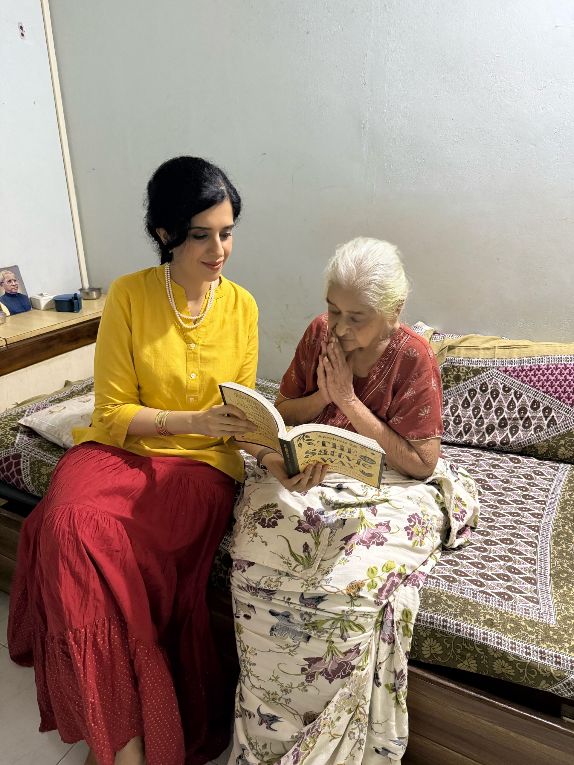 When I was writing my book, every time I visited her, she would ask me, “Where is your book?” She was very happy when she finally saw it. Seeing her hold my book and do a namaskar to it is something I will never forget. In that moment, I felt that something had come full circle. What she had practiced, lived, and passed on through her life had found its way into my work.